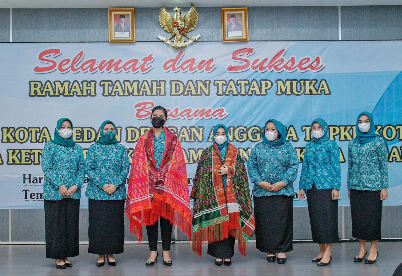 Dalam pertemuan ramah tamah ini Ketua TP PKK Kota Medan dan Ibu Wakil Wali Kota Medan juga di ulosi oleh Wakil Ketua I dan Bendahara TP PKK Kota Medan sebagai bentuk ucapan selamat datang di keluarga besar PKK Kota Medan.