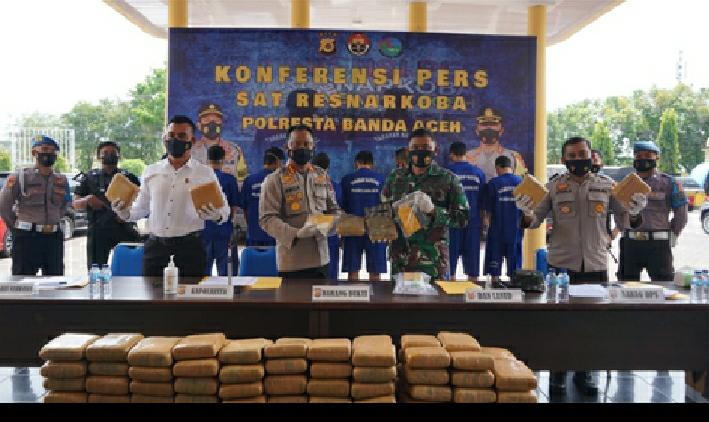 Banda Aceh – Satuan Resnarkoba Polresta Banda Aceh menggagalkan pengiriman 90 kg ganja ke Jakarta melalui Bandara Internasional Sultan Iskandar Muda (SIM) Blang Bintang, Aceh Besar. Kapolrestabes Banda Aceh, Kombes Pol Joko Krisdiyanto melalui Kasat Resnarkoba, AKP Raja Aminuddin Harahap mengatakan, puluhan kilogram ganja itu dimasukkan dalam tiga kotak yang masing-masing kotak berisi 30 kilogram ganja. “Barang kemudian dikirim menggunakan salah satu jasa pengiriman pada 21 Februari lalu. Pengirim ganja itu memang terpantau di CCTV, pelaku dua orang berinisial J dan R,” ujarnya di Mapolresta Banda Aceh, Selasa (16/3/2021). Kasat menjelaskan, usai dititipkan di jasa pengiriman, tersangka langsung kembali pulang. Pihak jasa pengiriman barang pun kemudian mengirim paket tersebut ke Jakarta melalui kargo Bandara SIM Blang Bintang. Tiba di kargo, barang diperiksa menggunakan X-Ray. Dari pemeriksaan tersebut, petugas bandara merasa curiga, sehingga membuka isi kotak hingga diketahui berisi ganja. “Sampai ke kargo diperiksa di X Ray, jadi mencurigakan, awalnya di jasa pengiriman ini tidak tahu bahwa itu ganja, mereka menerima saja 3 box awalnya,” kata Raja. Penemuan ganja ini pun kemudian diserahkan ke Sat Resnarkoba Polresta Banda Aceh. Polisi pun langsung melakukan penyelidikan dengan memeriksa saksi-saksi dan CCTV. “Setelah kita dalami, kita buka CCTV, kita lihat si pengirimnya siapa, dari alamat dan nomor HP yang ditinggalkan, ternyata nomor HP itu palsu. Namun kita lakukan upaya pelacakan, sehingga kita tahu siapa pelakunya berinisial J dan R,” ungkap Raja. Menurut Raja, kedua tersangka tersebut masih buron. Diduga, kedua tersangka saat ini sudah melarikan diri ke luar Aceh. “Yang bersangkutan kita kejar dan dia lari ke luar Aceh,” tambah Kasat Resnarkoba Polresta Banda Aceh, AKP Raja Aminudin Harahap.(@ndi/dir)