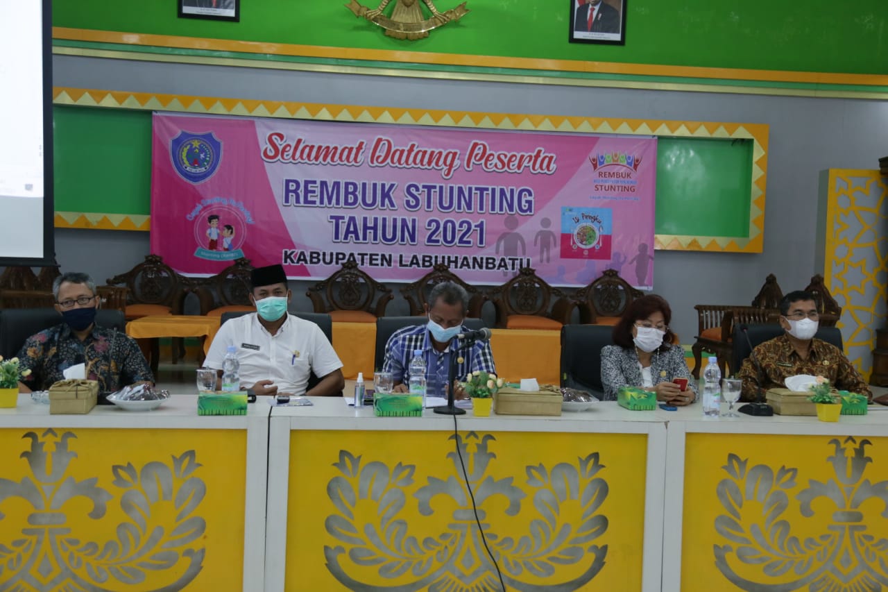 Labuhanbatu – LidikCyber.com_ Berdasarkan Keputusan Menteri Pembangunan Nasional (PPN)/ Kepala Bappenas No.KEP.42/M.PPN/HK/04/2020 tanggal 9 April 2020 perihal penetapan perluasan Kabupaten/Kota lokasi fokus intervensi penurunan stunting terintergrasi yang telah ditetapkan pada tahun 2018-2020 sebanyak 360 Kabupaten/Kota yang mana salah satunya adalah Kabupaten Labuhanbatu dari itu, Jum’at (26/03/2021), pemerintah kabupaten labuhanbatu melaksanakan Rembuk Stunting (Aksi 3) tahun 2021 di ruang data dan karya kantor Bupati Labuhanbatu jalan SM.Raja Rantauprapat Kecamatan Rantau Selatan.