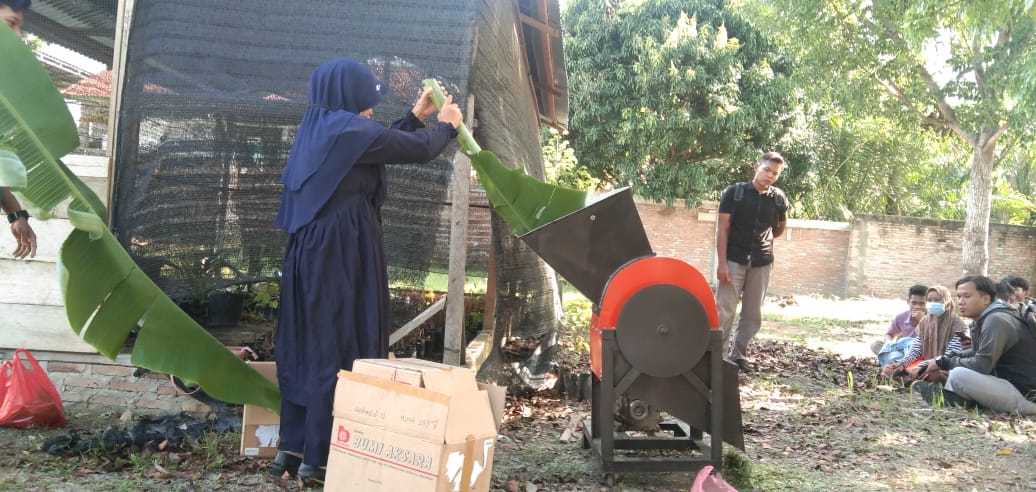 Mahasiswa Prodi Agroteknologi Fakultas Pertanian Universitas Islam Labuhanbatu melaksanakan praktek mesin chopper untuk Pemanfaatan Pengelolaan Pupuk Organik Cair dan padat/ Pakan ternak di kampus Unisla Jl.H.M Yunus Padang Bulan, Sabtu (27/03/2021).