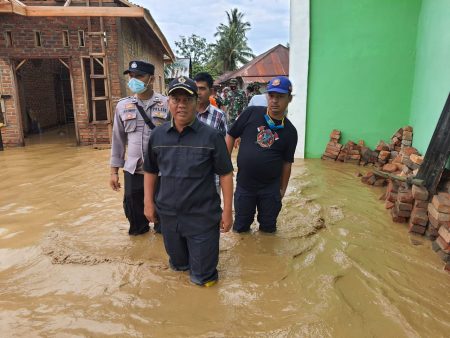 Wakil Bupati Palas drg. H Ahmad Zarnawi Pasaribu, meninjau lokasi banjir pemukiman warga di enam desa Kecamatan Barumun Baru.