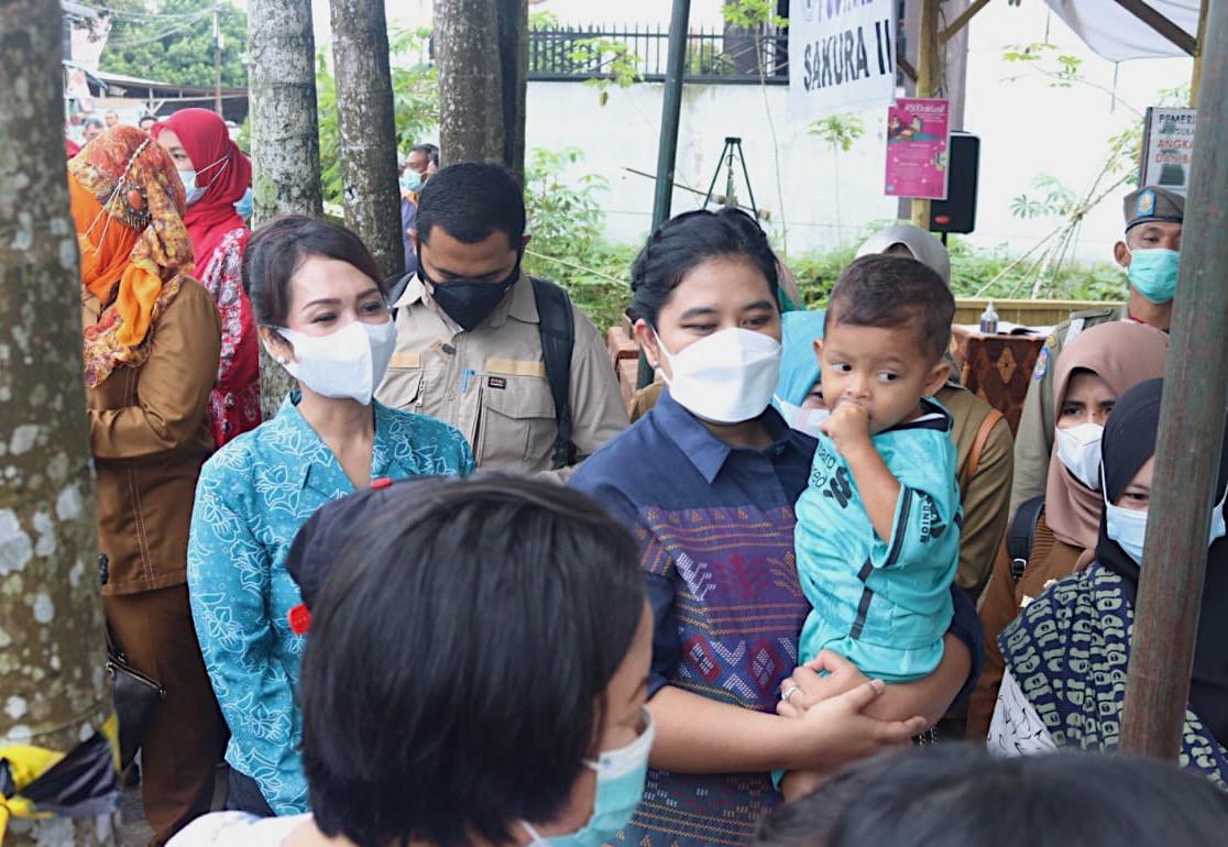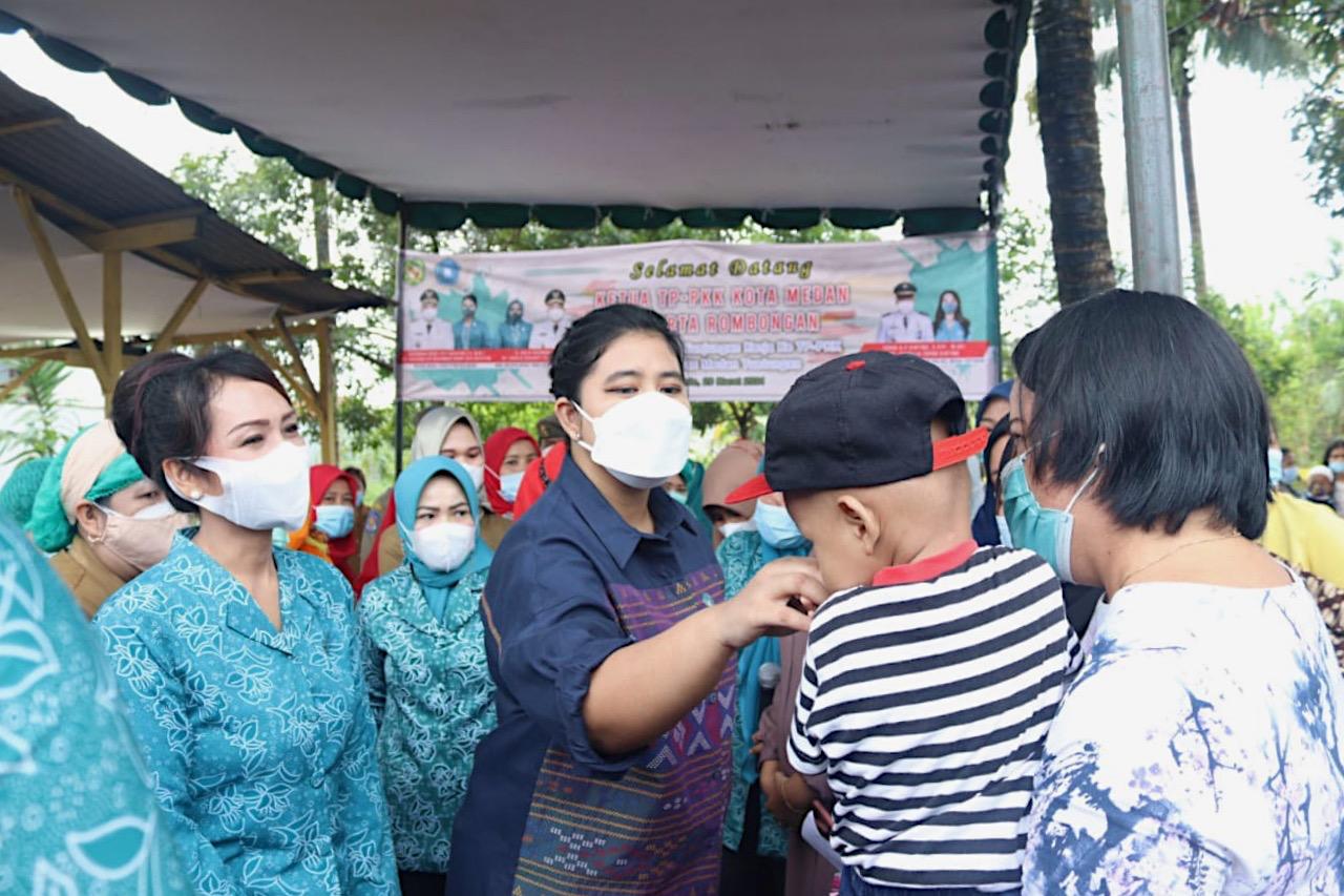 Ketua TP PKK Kota Medan Kahiyang Ayu Muhammad Bobby Afif Nasution melakukan kunjungan kerja ke Posyandu Balita dan Ibu Hamil di Jalan Flamboyan, Gang Manan, Lingkungan 3, Kelurahan Tanjung Selamat, Medan Tuntungan, Senin (29/3). Kunjungan ini merupakan bagian dari Pembinaan Kelembagaan PKK dan 10 Program Pokok PKK serta UMKM yang dilakukan TP PKK Kota Medan.