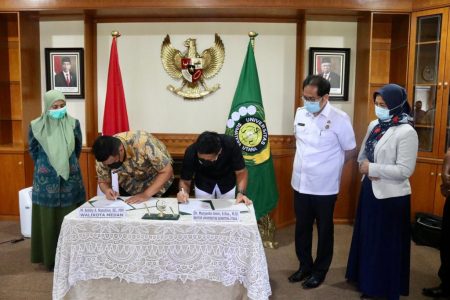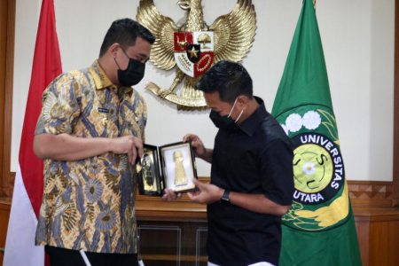 Wali Kota Medan, Muhammad Bobby Afif Nasution, S.E., M.M., dan Rektor Universitas Sumatera Utara (USU), Dr. Muryanto Amin, S.Sos. M.Si., menandatangani Nota Kesepahaman antara Pemko Medan dengan USU, Kamis (1/4) di Ruang Rektor, Gedung Rektorat USU. Nota Kesepahaman ini dibuat untuk meningkatkan hubungan antara Pemko Medan dengan USU dalam melaksanakan kegiatan pendidikan, penelitian, pengabdian kepada masyarakat, dan lain-lain yang dituangkan dalam Perjanjian Kerja Sama.