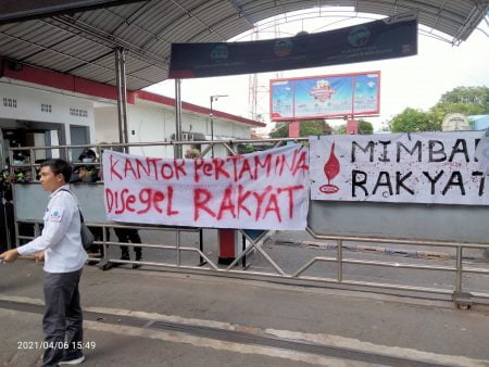 Medan_Lidikcyber.com Sekelompok mahasiswa yang tergabung dalam KAMMI Provinsi Sumut, selasa sore (6/4/2021) mendatangi dan menyegel kantor Pertamina UPP Region I Sumbagut di Jalan KL Yos Sudarso Medan. Dalam aksinya mahasiswa menolak kebijakan Pertamina yang menaikkan harga BBM dengan jumlah dua ratus rupiah perliternya. Menurut mahasiswa, kebijakan Pertamina menaikkan harga BBM ditengah pandemi yang masih belum usai seperti saat ini, hanyalah akan menambah penderitaan dan menyengsarakan rakyat, khususnya masyarakat kelas bawah.
