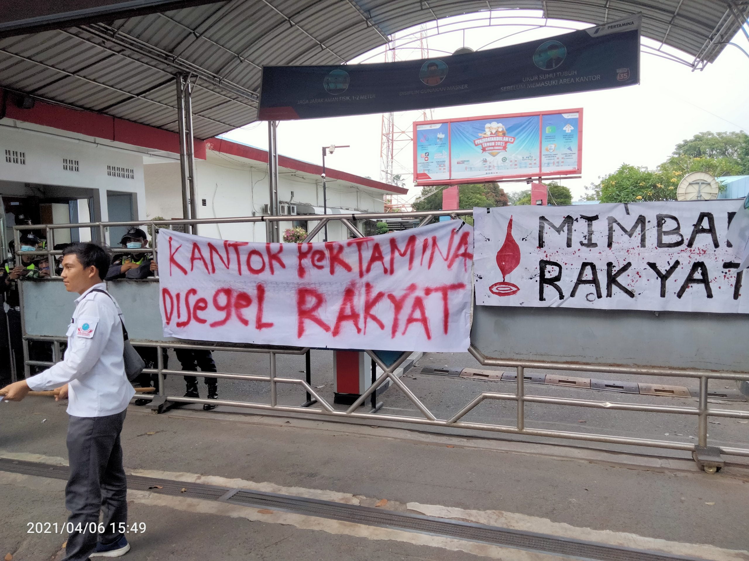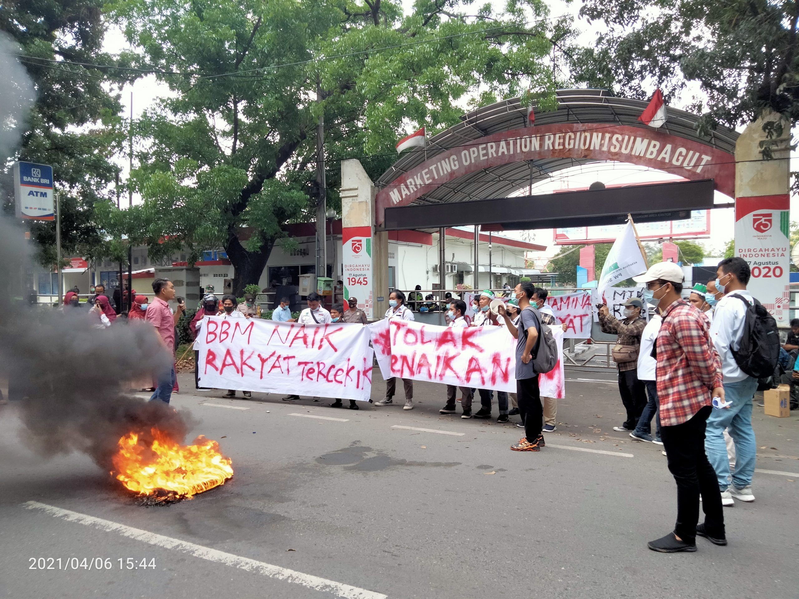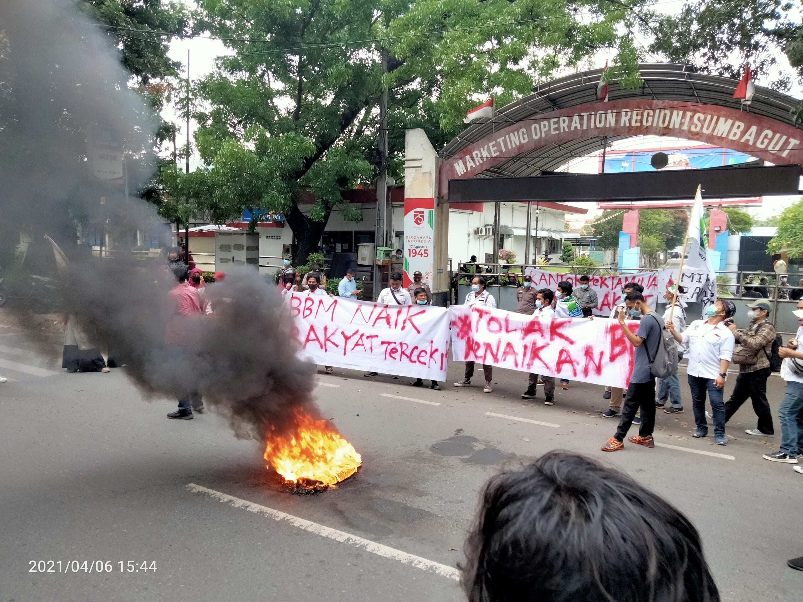 Dari amatan media ini, pintu masuk ke gedung Pertamina Region I Sumbagut terlihat ditutup rapat oleh sejumlah security, hal ini sengaja mereka lakukan ditengah aksi mahasiswa, dengan tujuan agar personil mahasiswa tidak masuk ke dalam kawasan tersebut. Sementara di depan pintu masuk, terlihat bakaran ban bekas yang menyala, dan sejumlah spanduk yang terpampang, dengan berbagai tulisan.
