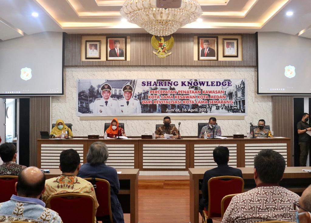 Pemko Medan menggelar kegiatan Sharing Knowledge Percepatan Penataan Kota Lama Kesawan Medan dari Revitalisasi Kota Lama Semarang, Jumat (16/4) di Ruang Rapat III, kantor wali kota. Wali Kota Medan, Muhammad Bobby Afif Nasution, S.E., M.M. menilai kegiatan berbagi pengetahuan tentang penataan dan pengelolaan kota lama ini sangat bermanfaat dalam upaya percepatan penataan kawasan bersejarah Kesawan.