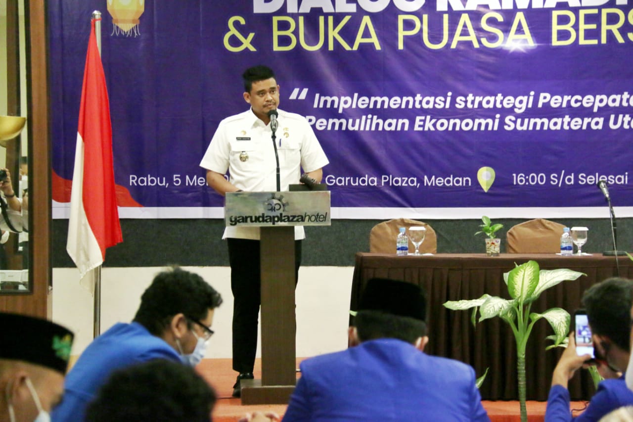 Wali Kota Medan, Muhammad Bobby Afif Nasution,SE.,MM menghadiri pembukaan dialog ramadhan yang digelar pengurus Pergerakan Mahasiswa Islam Indonesia (PMII) Sumut di Hotel Garuda Plaza Medan, Rabu (5/5).
