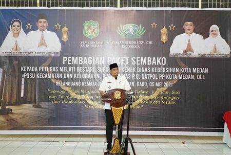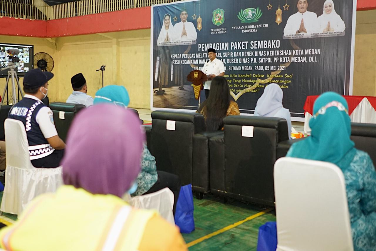 Selanjutnya Wali Kota Medan mengucapkan terima kasih kepada Yayasan Buddha Tzu Chi Medan yang telah mendonasikan paket sembako untuk Pemko Medan. Semoga Program ini dapat bermanfaat bagi seluruh petugas di lingkungan Pemko Medan.