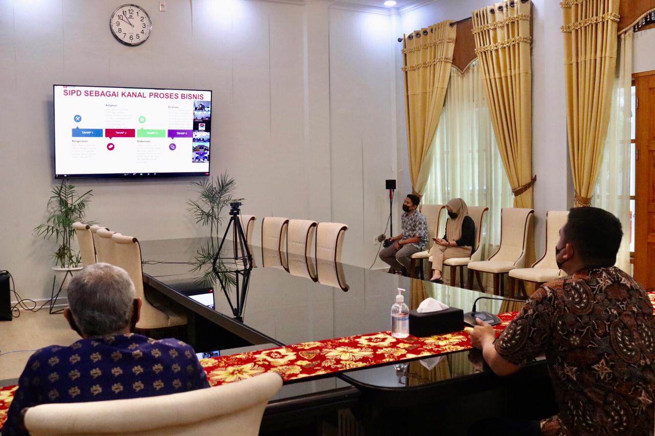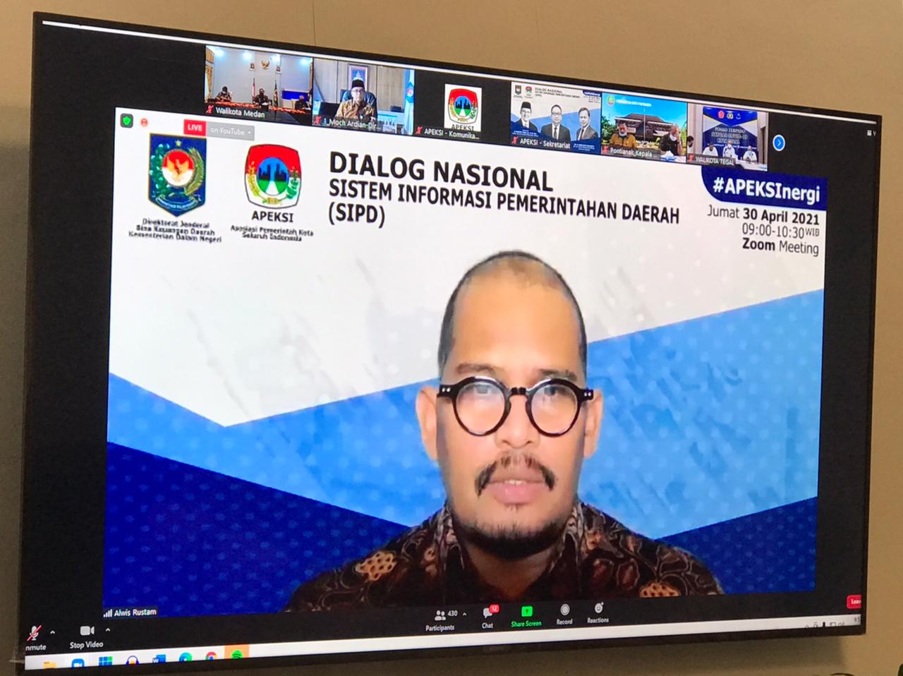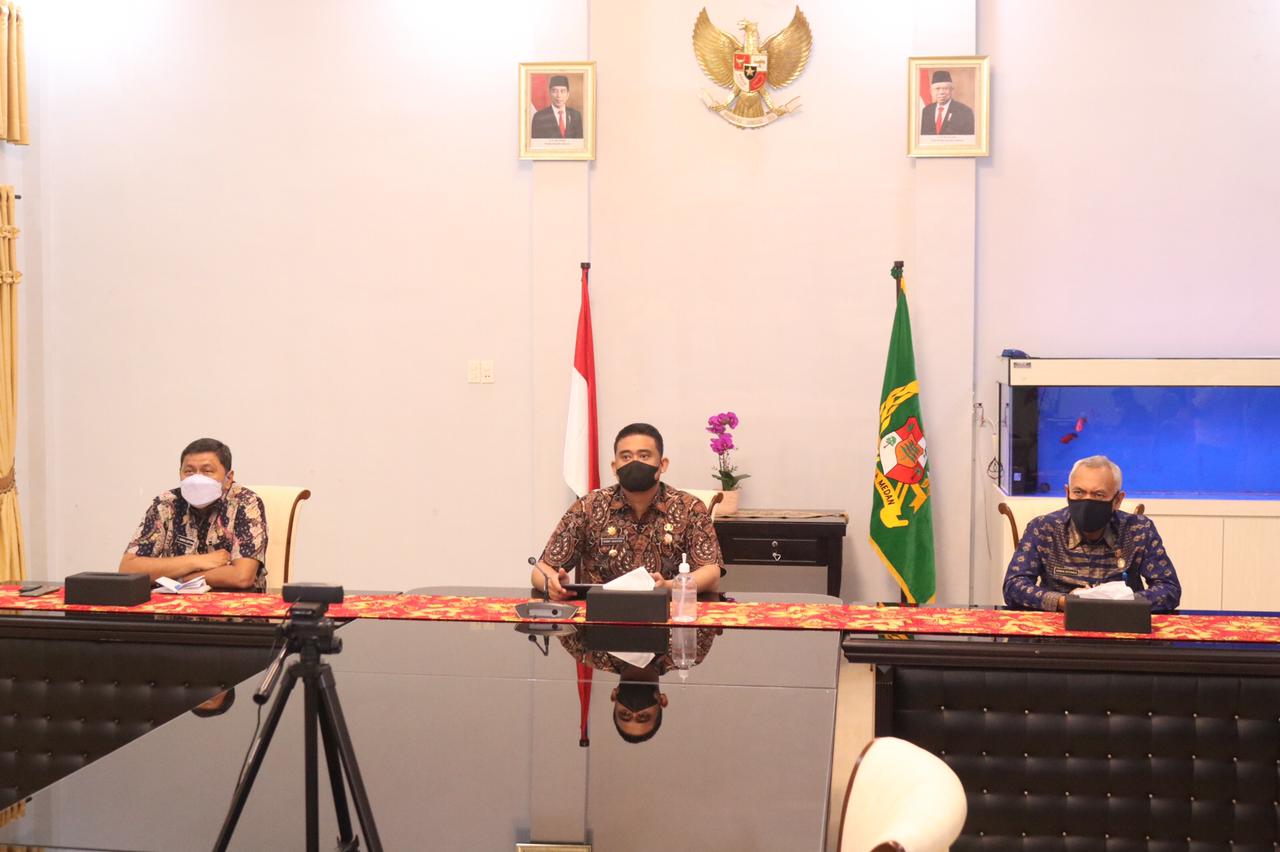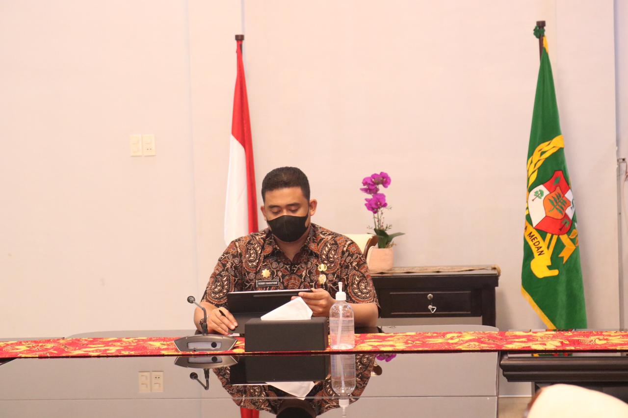 Wali Kota Medan, Muhammad Bobby Afif Nasution, S.E., M.M. mengikuti Dialog Nasional Implementasi Sistem Informasi Pemerintahan Daerah (SIPD) yang digelar Asosiasi Pemerintah Kota Seluruh Indonesia (Apeksi) secara virtual dari Ruang Rapat Rumah Dinas Wali Kota Medan, Jumat (30/4).