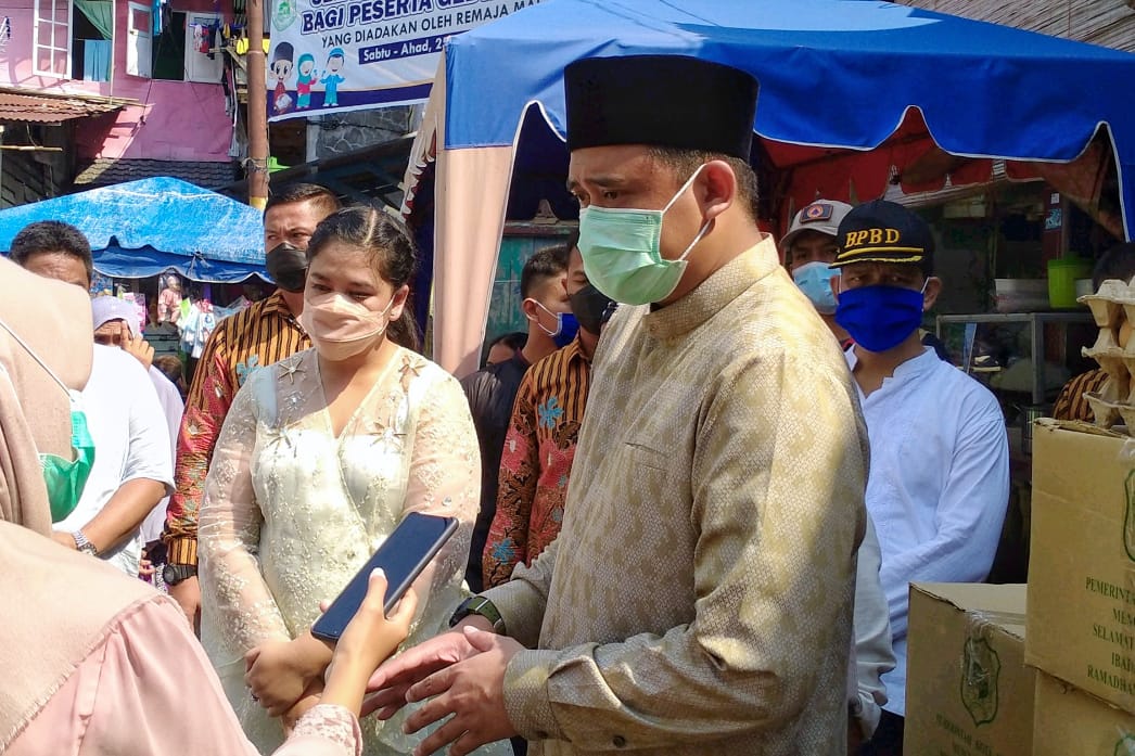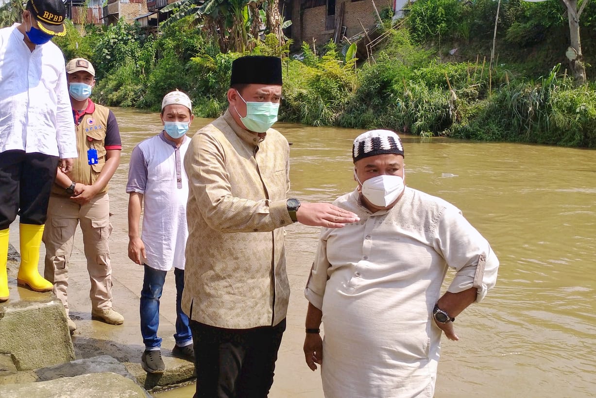 Mendengar ratusan rumah warga yang berada di pemukiman kampung Aur, Jalan Brigjen Katamso, Kelurahan Aur, Kecamatan Medan Maimun, terendam banjir akibat meluapnya Sungai Deli di malam Takbiran Wali Kota Medan Muhammad Bobby Afif Nasution SE MM bersama Ketua TP PKK Kota Medan Ny Kahiyang Ayu Muhammad Bobby Afif Nasution langsung meninjau lokasi, Kamis (13/5).