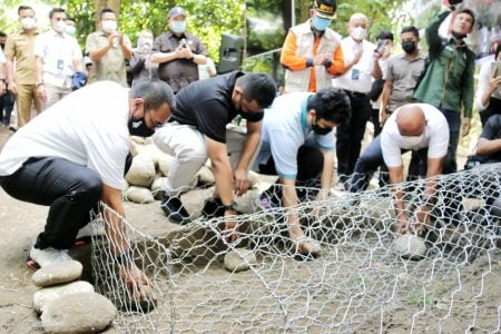 Usai menyusuri sungai, Bobby Nasution kemudian melakukan peletakan batu pertama pembangunan taman edukasi bencana dan dinding penahan bantaran sungai yang berasal dari bantuan CSR PT. PLN Persero Unit Induk Wilayah Sumatera Utara.