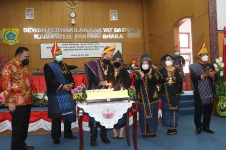 Usai penyampaian pidatonya, Bupati Pakpak Bharat mengajak segenap hadirin, Anggota DPRD, Anggota Forum komunikasi Pimpinan Daerah, perwakilan Tokoh Pemekaran Kabupaten Pakpak Bharat serta tokoh lainnya bersama-sama meniup lilin ulang tahun serat memotong kue ulang tahun Pakpak Bharat ke-18 tahun 2021.(was)