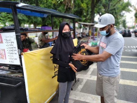 Bantuan sembako untuk PKL ini disalurkan oleh Abink staf Kabareskrim Polri bersama Paguyuban Pedagang Kaki Lima STM.