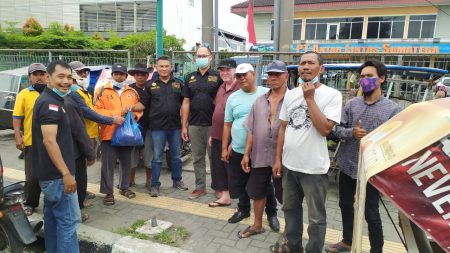 Lidikcyber,Medan. – Poros Muda Sumatera Utara berbagi nasi bungkus di Jum’at berkah kepada saudara saudara dan rekan juang becak bermotor ( Betor ) di simpang Gg Dame Simpang Amplas – Patumbak dan didepan stasiun bus ALS jalan Sisingamangaraja Medan, Jum’at (1/10/2021).