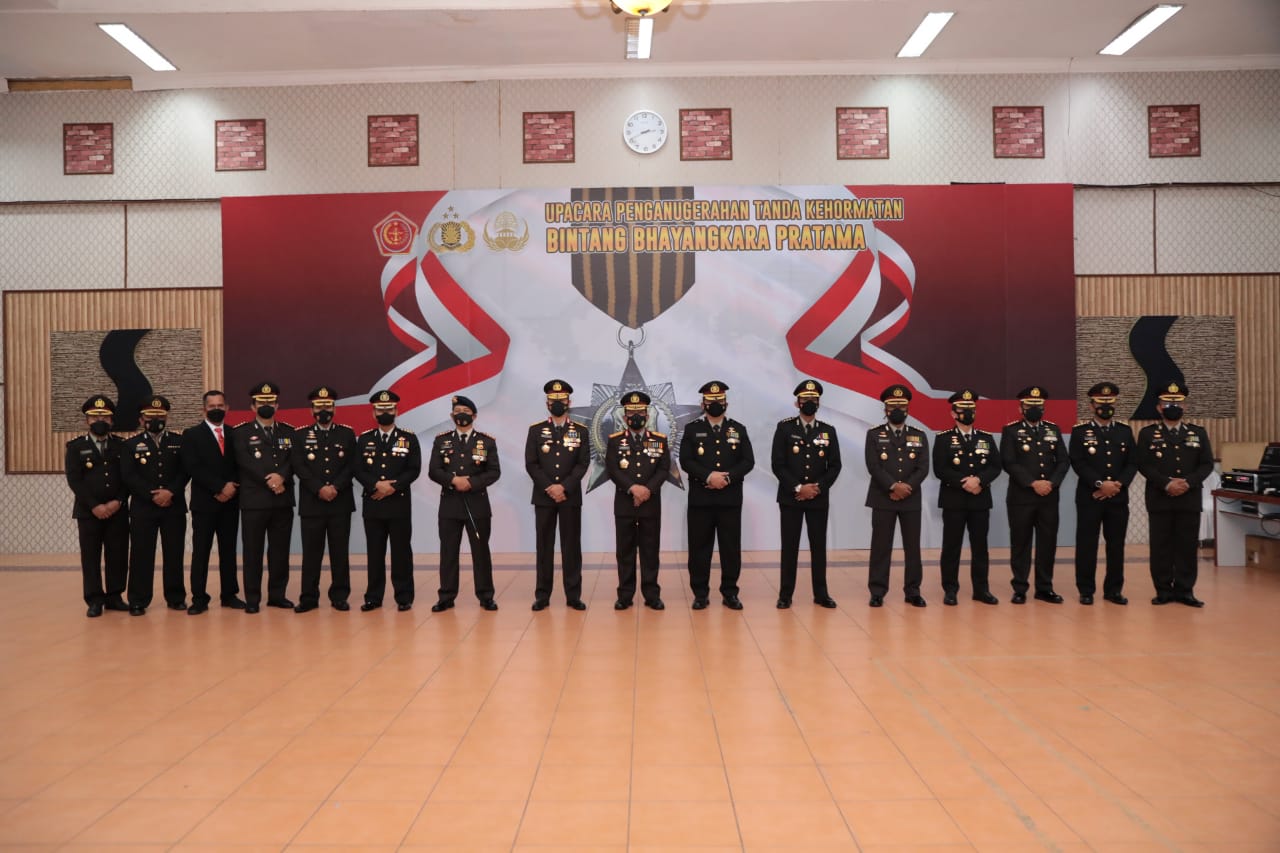 Penganugrahan Tanda Kehormatan Bintang Bhayangkara Pratama ini disematkan kepada 74 orang yang terdiri dari 61 Perwira Tinggi Polri, 8 Perwira Tinggi TNI dan 5 ASN.