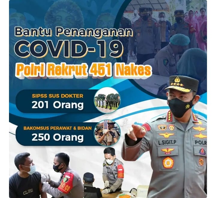 Kepolisian RI merekrut 451 Tenaga Kesehatan (Nakes), SIPSS SUS Dokter 201 orang,, dan 250 tenaga Bakomsus Perawat dan Bidan.