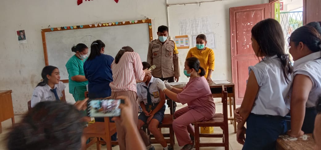 Kegiatan ini dilaksanakan Personil Bhabinkamtibmas Polsek Biru Biru berkerjasama dengan Tenaga Kesehatan dari Urkes Polresta Deli Serdang sebagai vaksinator.