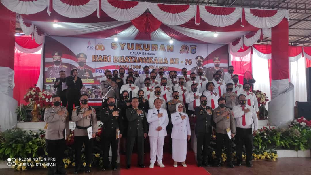 Upacara HUT Bhayangkara ke-76 dilanjutkan dengan syukuran yang ditandai dengan pemotongan tumpeng oleh Kapolres Labuhanbatu didampingi Bupati Labuhanbatu,