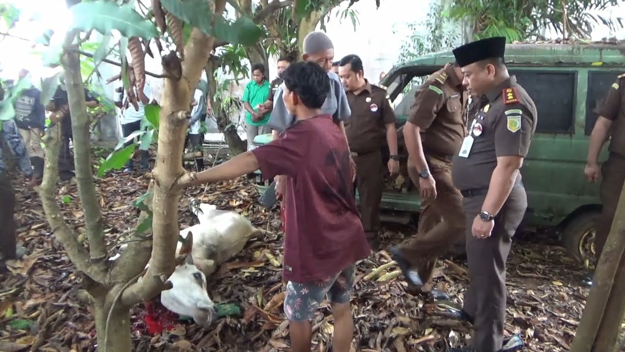 Penyembelihan hewan kurban tersebut di saksikan langsung, oleh Kepala Kejaksaan Negeri Labuhanbatu, para jaksa dan Aparatur Sipil Negara.
