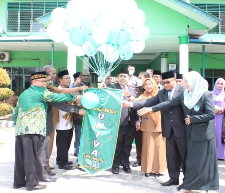 Pemerintah Kabupaten (Pemkab) Labuhanbatu mengucapkan selamat Milad ke 14 Tahun Universitas Al-Washliyah (Univa) Labuhanbatu. Ucapan tersebut disampaikan langsung oleh Asisten I Pemerintahan dan Kesra Drs.Sarimpunan Ritonga, M.Pd saat menghadiri kegiatan di Halaman Kampus Univa, Jalan Sempurna, Kelurahan Bakaran Batu, Rantau Selatan, Senin (01/08/2022).