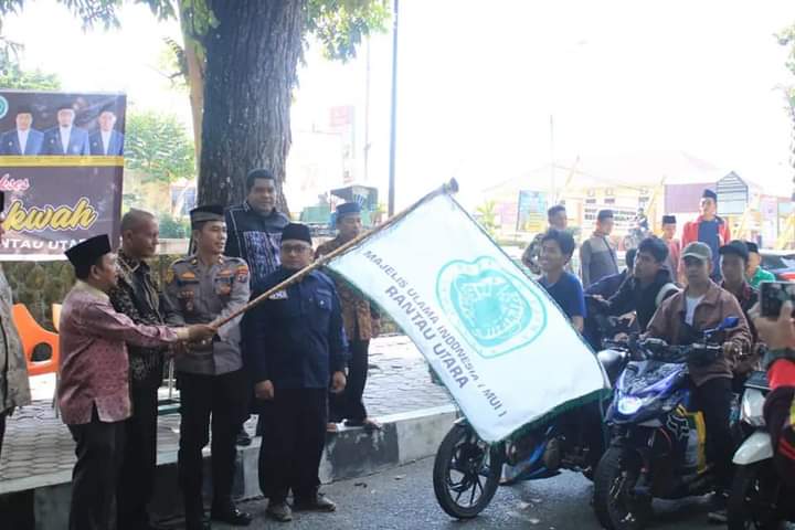 Asisten l Pemerintahan dan Kesra Drs. Sarimpunan M.Pd melepas 120 Peserta Untuk Mengikuti Kemah Dakwah, di Lapangan Ika Bina, Rantauprapat, Sabtu (13/08/2022).