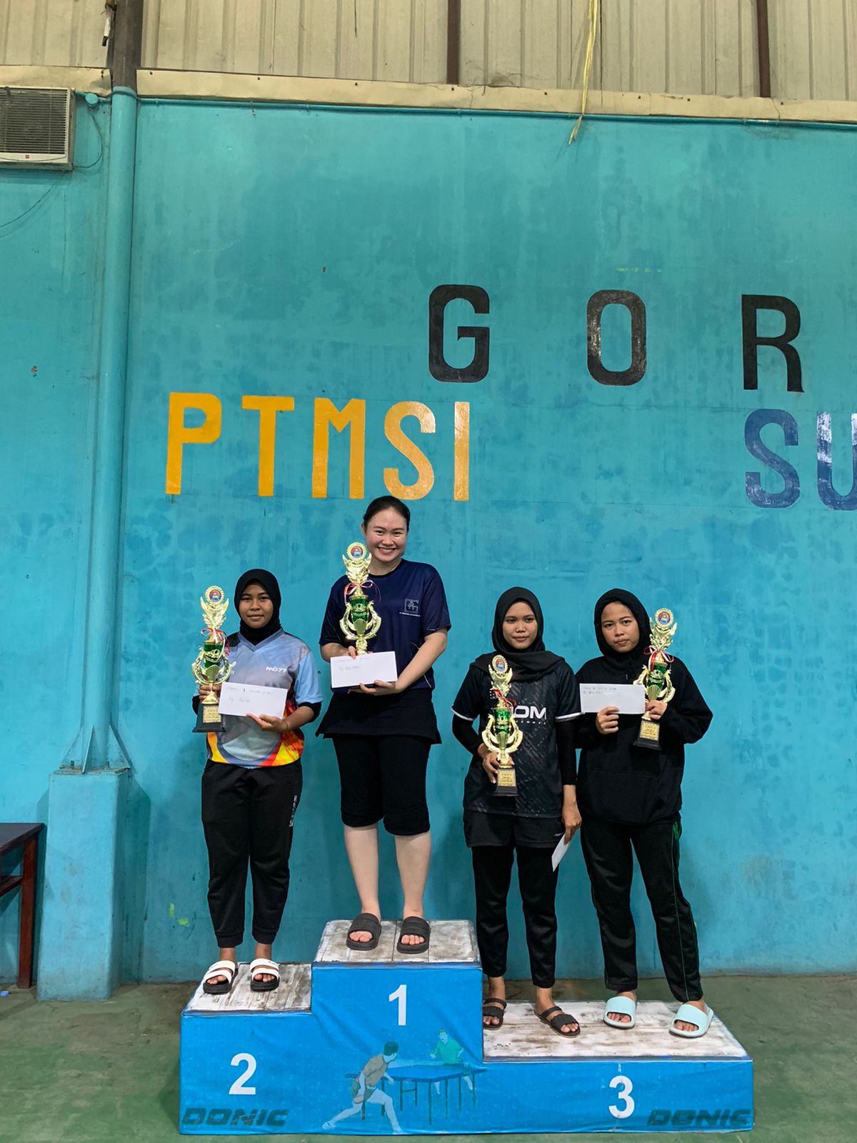 Stevany als Mimi 7 kali menang dalam pertandingan tenis meja putri Se-Sumatera Utara yang digelar di GOR TSP PTMSI Medan hari Minggu (04/09/2022). Atlet tenis meja putri dari PTMSI Kabupaten Labuhanbatu bernama Stevany (21), tampil sebagai Juara 1 Putri.