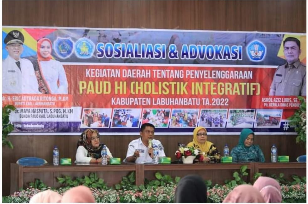 Plt. Kepala Dinas Pendidikan Kabupaten Labuhanbatu, Asrol Aziz Lubis SE, M. AP membuka sosialisasi dan advokasi PAUD HI (Holistik Integratif) Kabupaten Labuhanbatu Tahun 2022, di Aula Kantor PKK, Jalan W.R. Supratman, Kecamatan Rantau Utara, Rabu (07/09/2022).