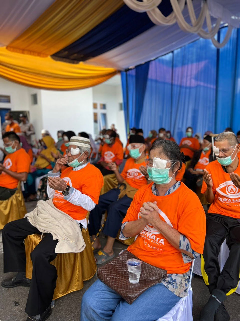 Peresmian operasi katarak ditandai dengan pembukaan perban dan pemberian obat tetes mata oleh manajemen PTAR kepada pasien yang sudah menjalani operasi sehari sebelumnya.