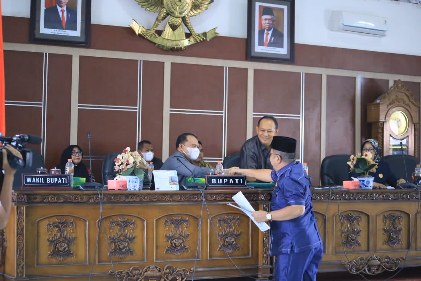 Sebelumnya, Bupati Labuhanbatu dr.Erik Adtrada Ritonga,MKM mengucapkan terimakasih kepada pimpinan sidang, Ketua DPRD dan anggota DPRD Kabupaten Labuhanbatu yang telah menyetujui rancangan peraturan daerah P-APBD Kabupaten Labuhanbatu tahun anggaran 2022 menjadi perda.