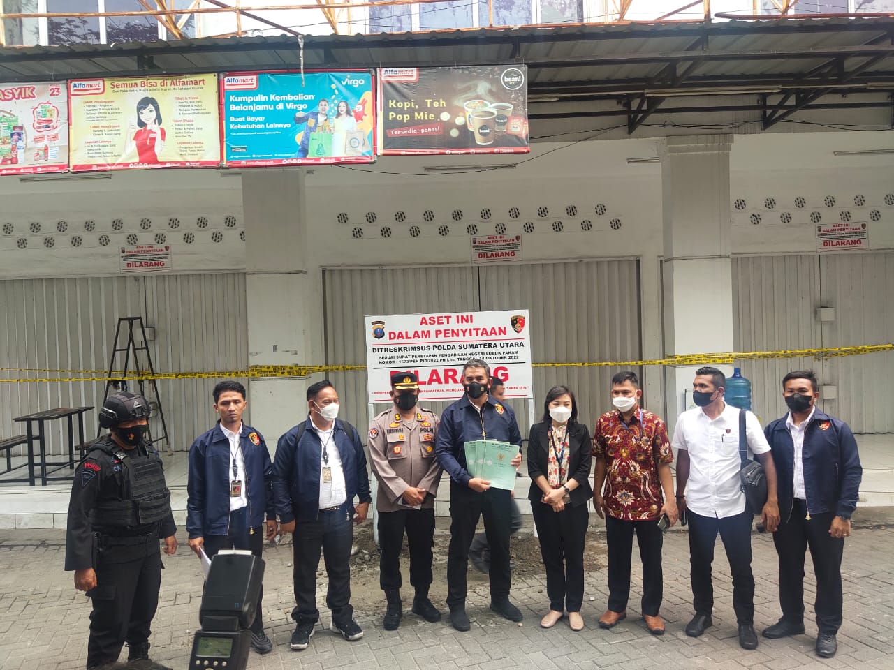Penyitaan pertama terhadap tiga bangunan yang sebelumnya disewakan menjadi minimarket.