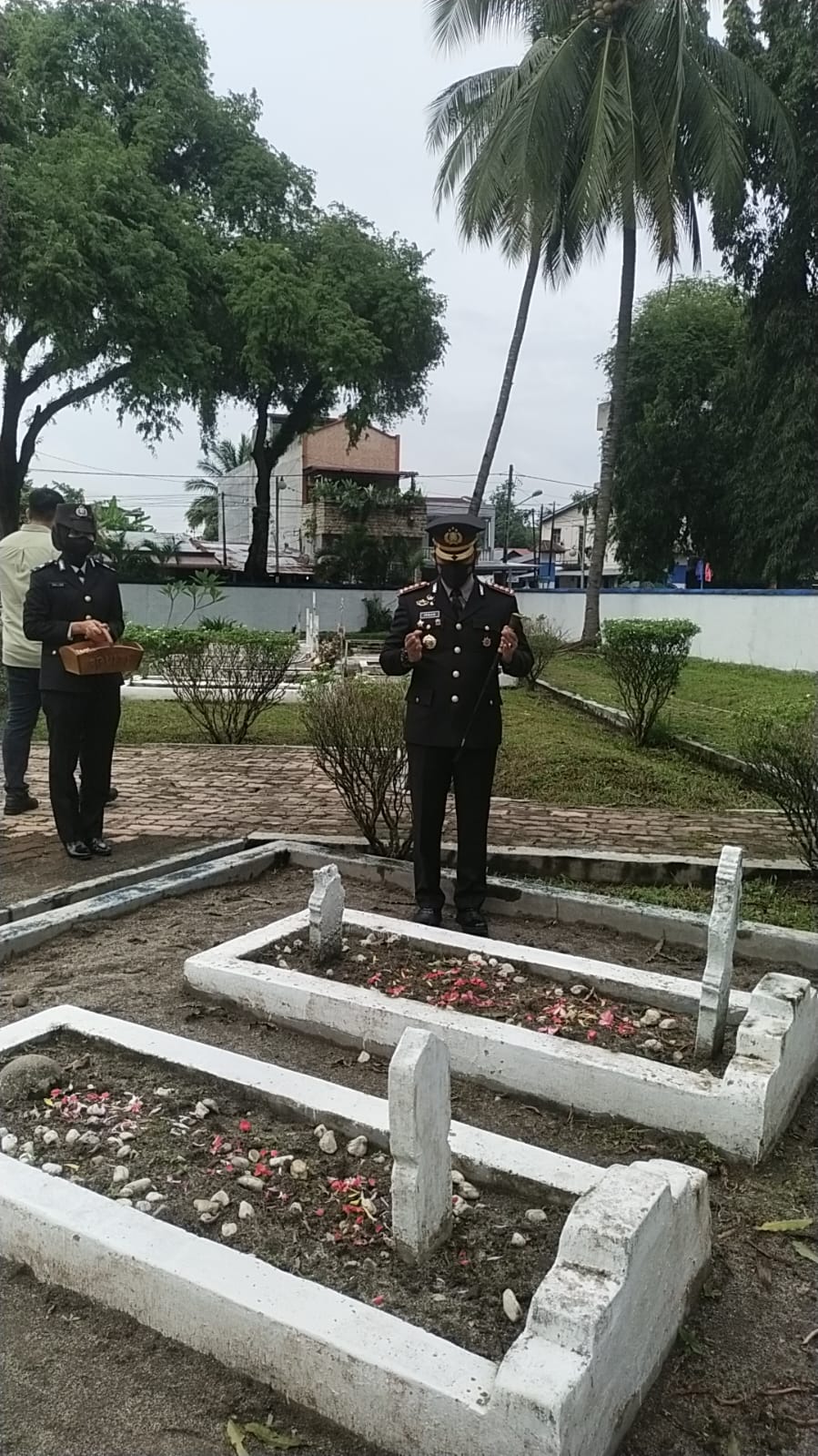 Kemudian dilanjutkan dengan penaburan bunga yang diawali oleh Kapolresta Deli Serdang dan diikuti oleh seluruh peserta ziarah.