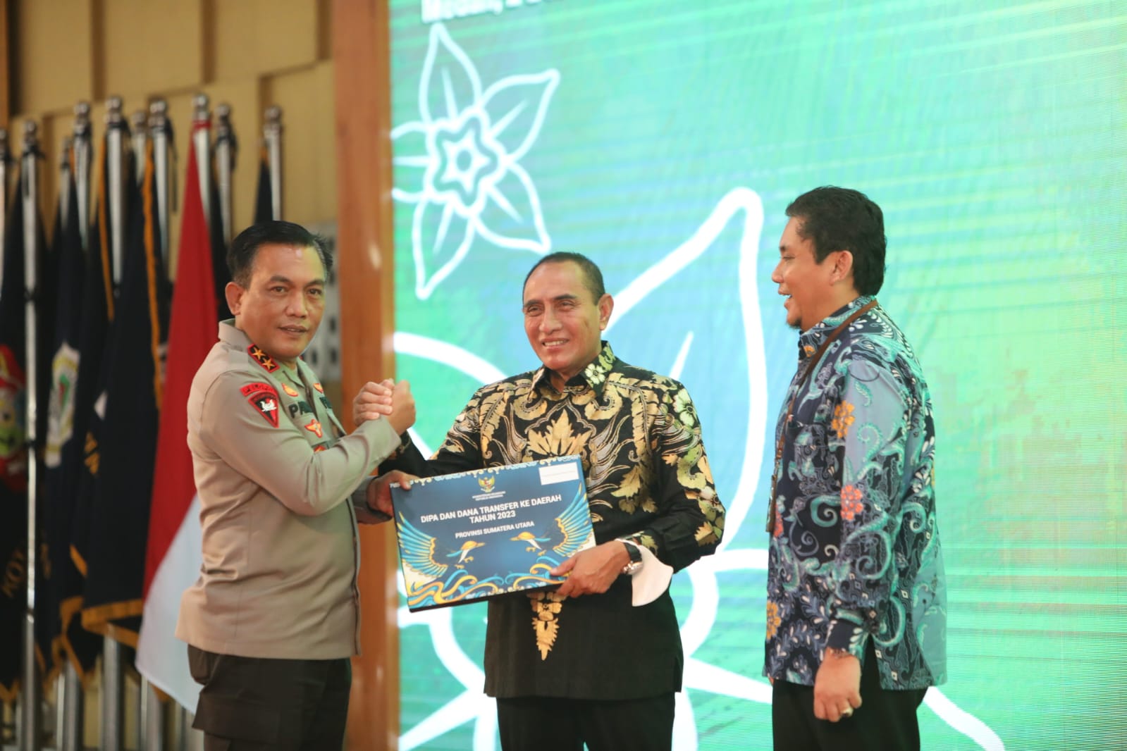 Dalam penyerahan DIPA daerah Tahun 2023 hadir Gubernur Sumut Edy Rahmayadi, Plt Kepala Kanwil DJPb, Heru Pudyo Nugroho, pejabat Pemprov Sumut serta PJU Polda Sumut.