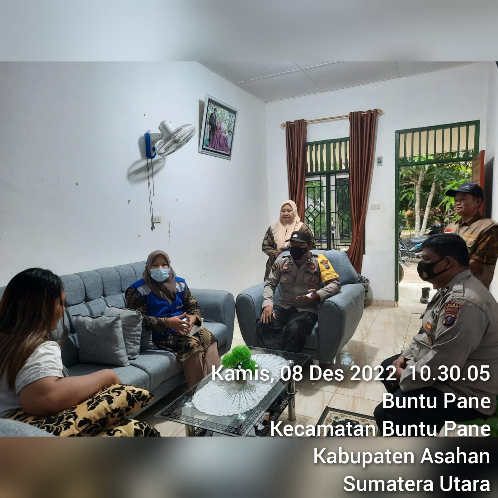 kanit binmas Polsek Prapat Janji Polres Asahan bersama Sri Wahyuni / petugas surpailens, Nita/ tim trecer puskesmas prapat janji, Aiptu S. Gintinting / kanit binmas polsek prapat janji, Brigadir Richard Sirait/ Bhabinkanmtibmas, dan Petugas PPKM desa Buntu pane melaksanakan kegiatan 3T dalam rangka pencegahan, mengingat adanya warga yang terindetifikasi covid-19.