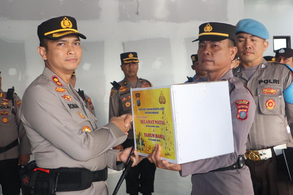 Lidikcyber.com, Asahan – Kapolres Asahan, AKBP Roman Smaradhana Elhaj, SH, SIK, MH telah melaksanakan kegiatan Upacara pemberian Piagam Penghargaan kepada Personel Polres Asahan yang berprestasi dan Penyerahan Paket Natal dan Tahun Baru bagi yang beragama Nasrani yang digelar di Aula Wira Satya Polres Asahan Rabu (21/12/2022) sekira jam 08.00 Wib.
