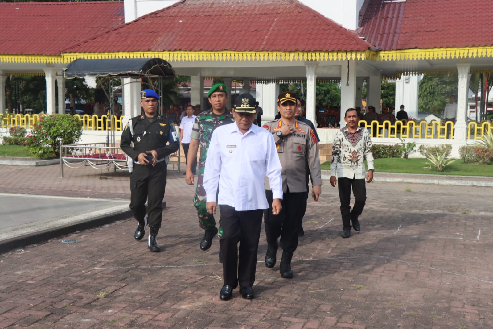 Bupati Deli Serdang, H Ashari Tambunan selaku pimpinan Apel Gelar Pasukan Kegiatan Rutin yang Ditingkatkan (KRYD), di Alun Alun Pemerintah Kabupaten (Pemkab), Lubuk Pakam, Rabu (01/02/2023).