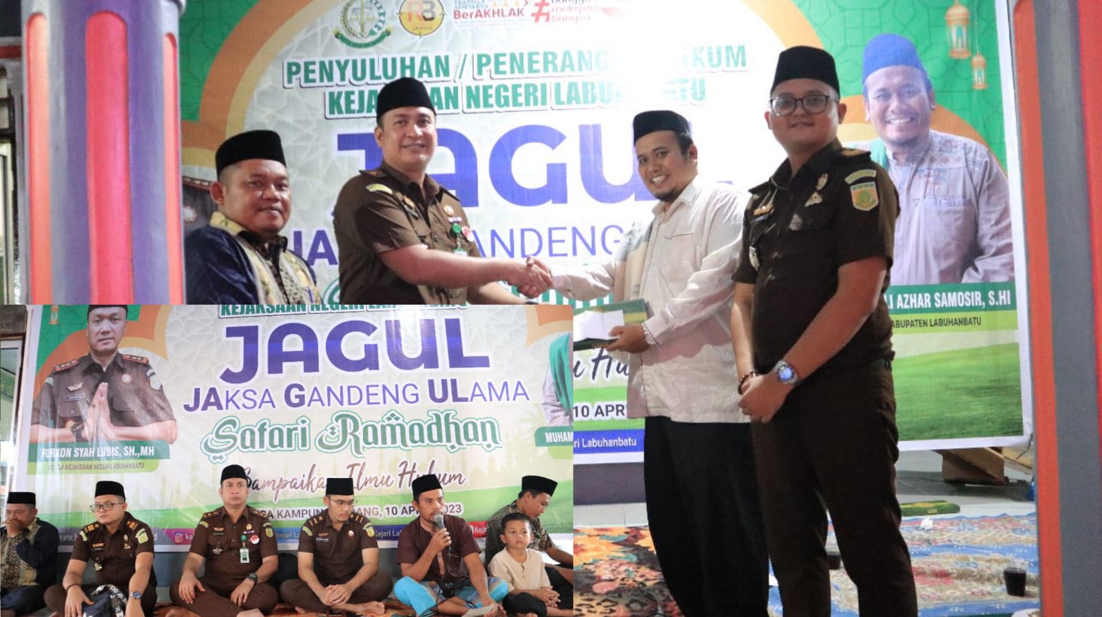 Kepala Kejaksaan Negeri Furkon Syah Lubis. SH., MH melalui rilis berita ini menyampaikan bahwa melalui program JAGUL (Jaksa Ganden Ulama) dalam menyampaikan penyuluhan hukum Kejaksaan Negeri Labuhanbatu telah melaksakanakan himbauan dan arahan Jaksa Agung dengan kegiatan yang tidak menimbulkan kecemburuan dan tidak flexing di tengah-tengah masyarakat. Program JAGUL ini juga memberikan bantuan ikhlas ke masjid, berupa infaq dan buku-buku keagamaan serta tali kasih berupa kasin sarung/sholat kepada tokoh agama dan tokoh masyarakat setempat.
