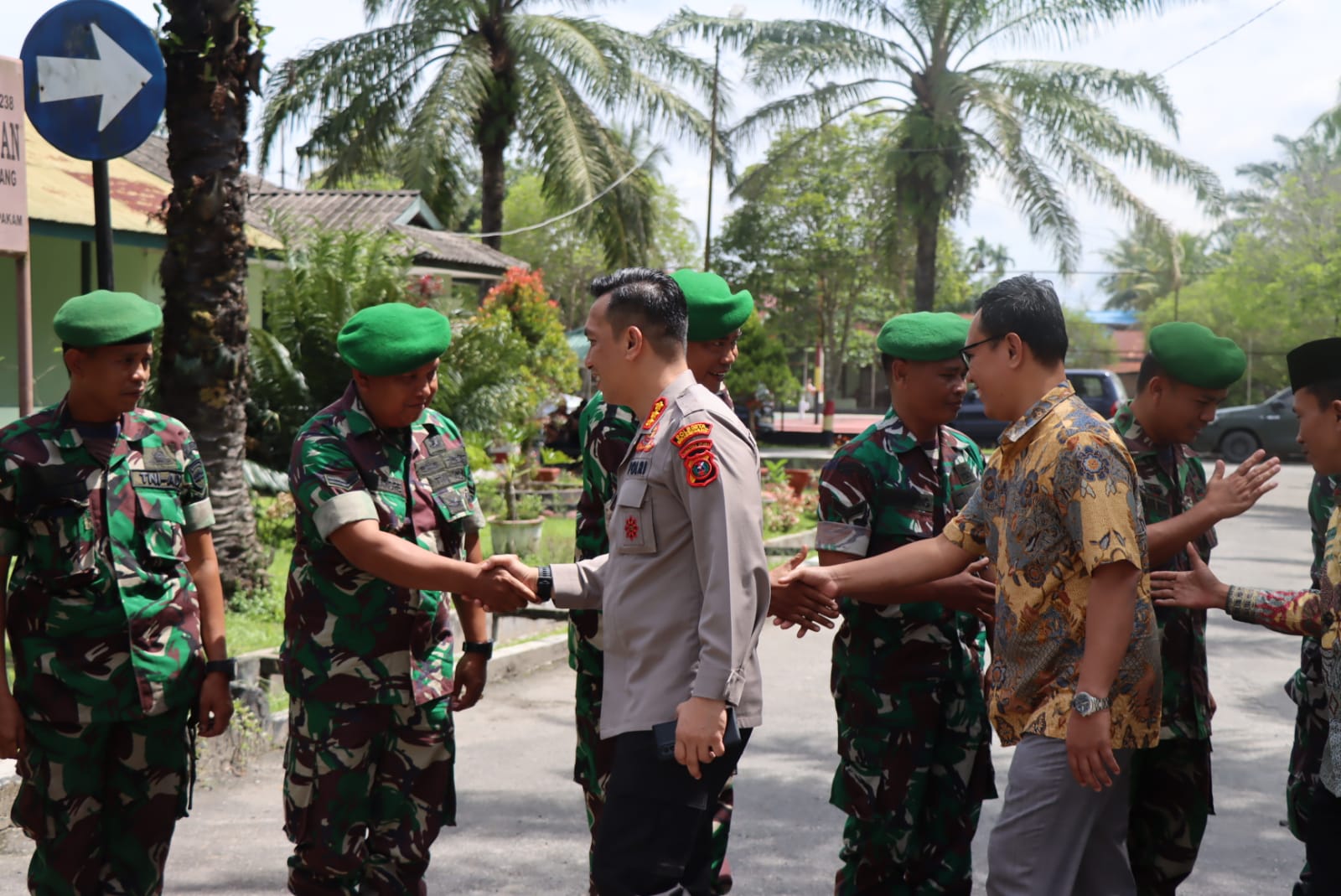 Kedatangan Kapolresta Deli Serdang beserta rombongan pun disambut langsung oleh Dandim 0204 Deli Serdang Letkol. Czi Yoga Febrianto, SH, MSi beserta Istri dan para PJU Kodim 0204/DS yang terlihat saling bersalaman kompak satu persatu.
