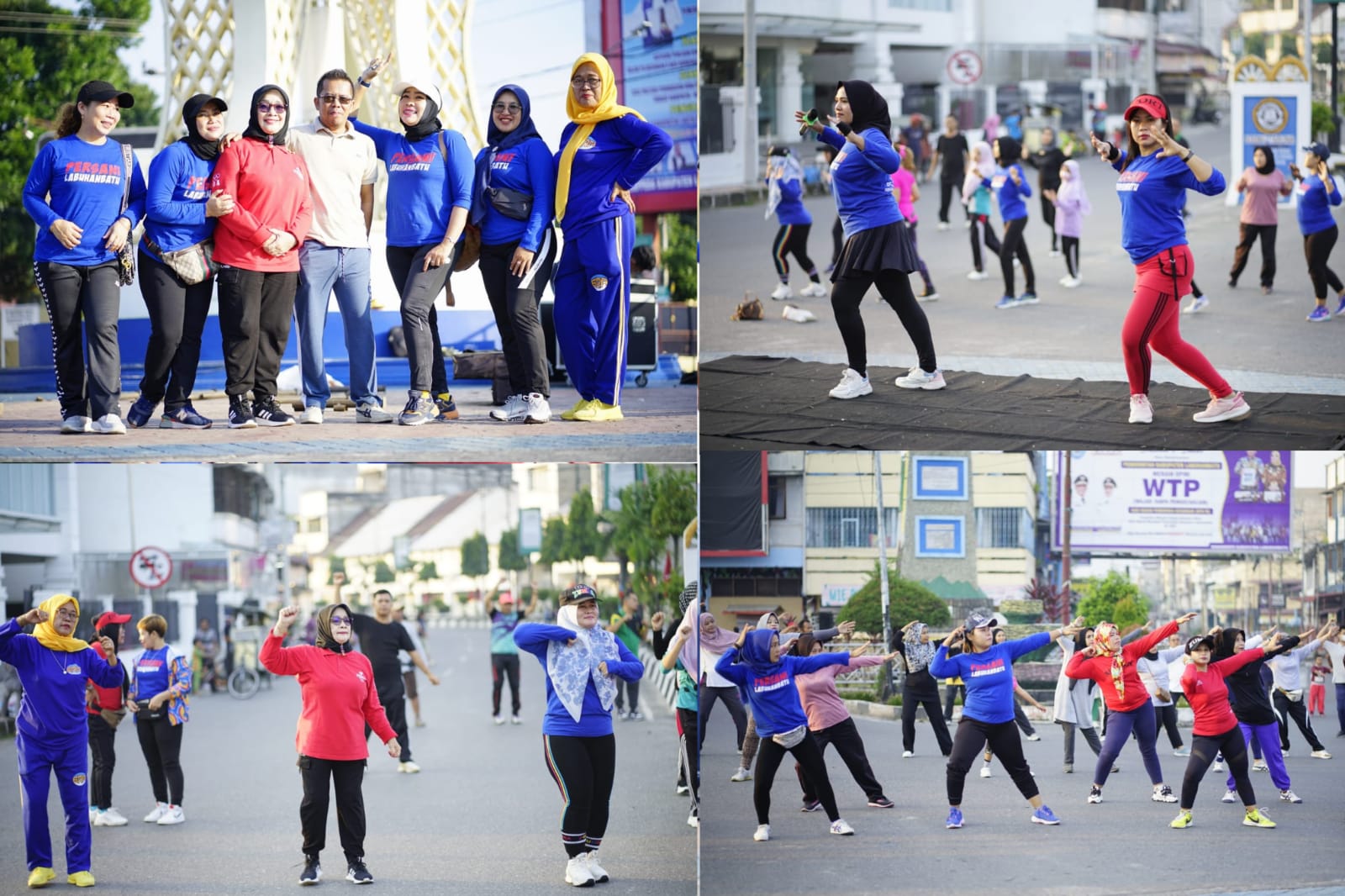Wakil Bupati Labuhanbatu Hj. Elya Rosa Siregar, S.Pd., MM mengikuti Senam Sehat bersama yang diadakan kembali setelah libur selama Ramadan dan Idul Fitri, pada kegiatan Car Free Day di Simpang 6 Rantauprapat, Minggu (14/05/2023).