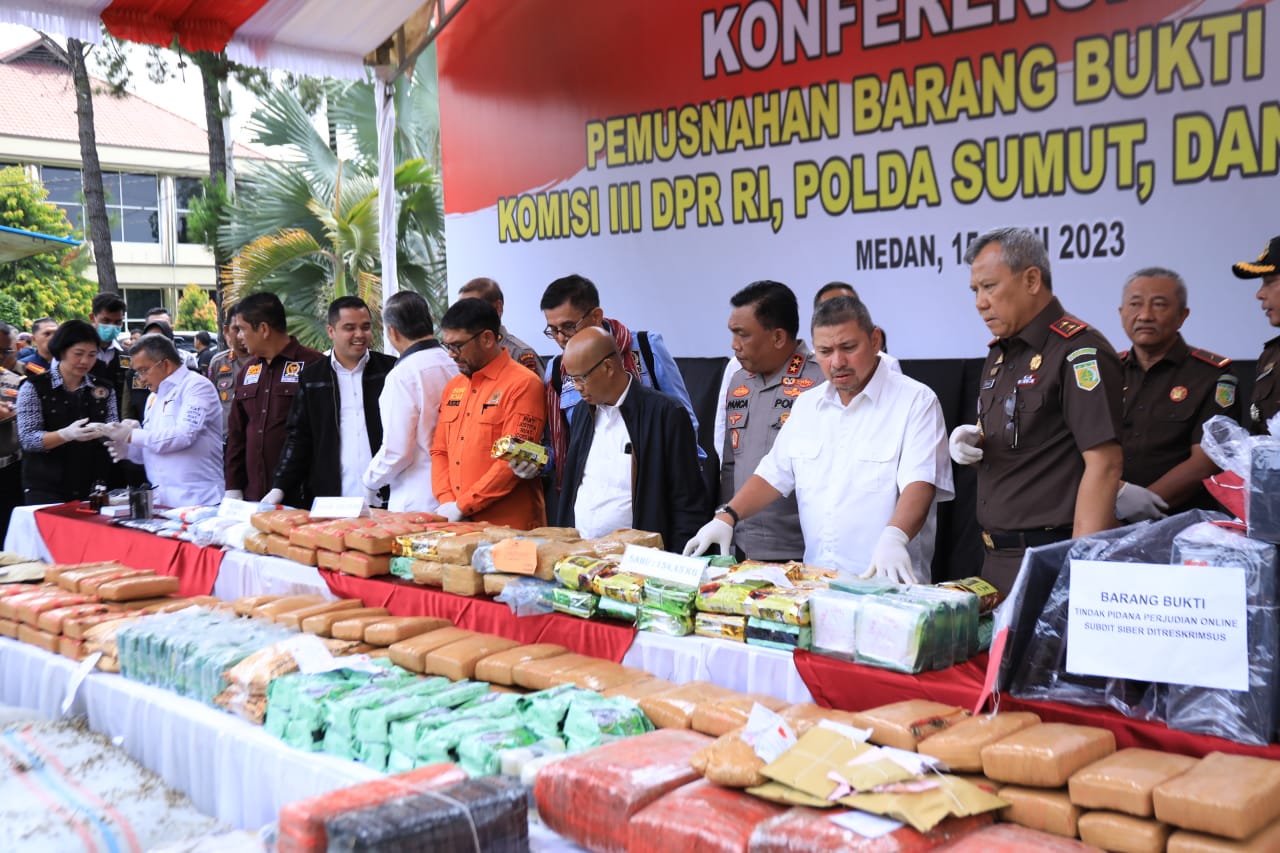 Selanjutnya, hasil tangkapan narkoba berbagai merek itu pun dimusnahkan Polda Sumut bersama Komisi III DPR RI dengan menggunakan mesin incenarator, Kamis (15/6).