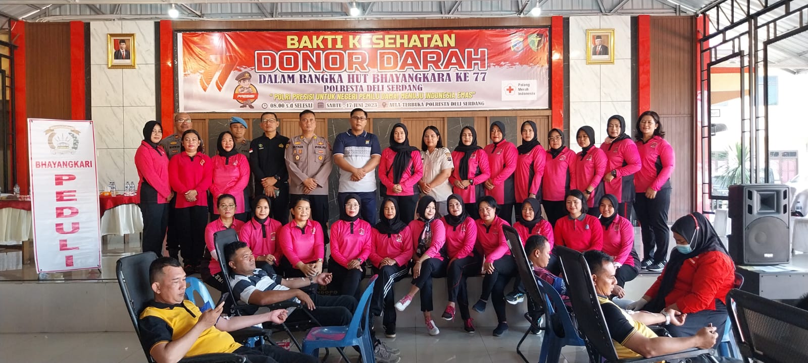 “untuk menyambut hari Bhayangkara ke – 77, Polresta Deli Serdang melaksanakan kegiatan donor darah sekaligus untuk membantu ketersediaan stok darah di PMI. Semoga dapat bermanfaat bagi masyarakat, terutama yang membutuhkan transfusi darah,” ujarnya.
