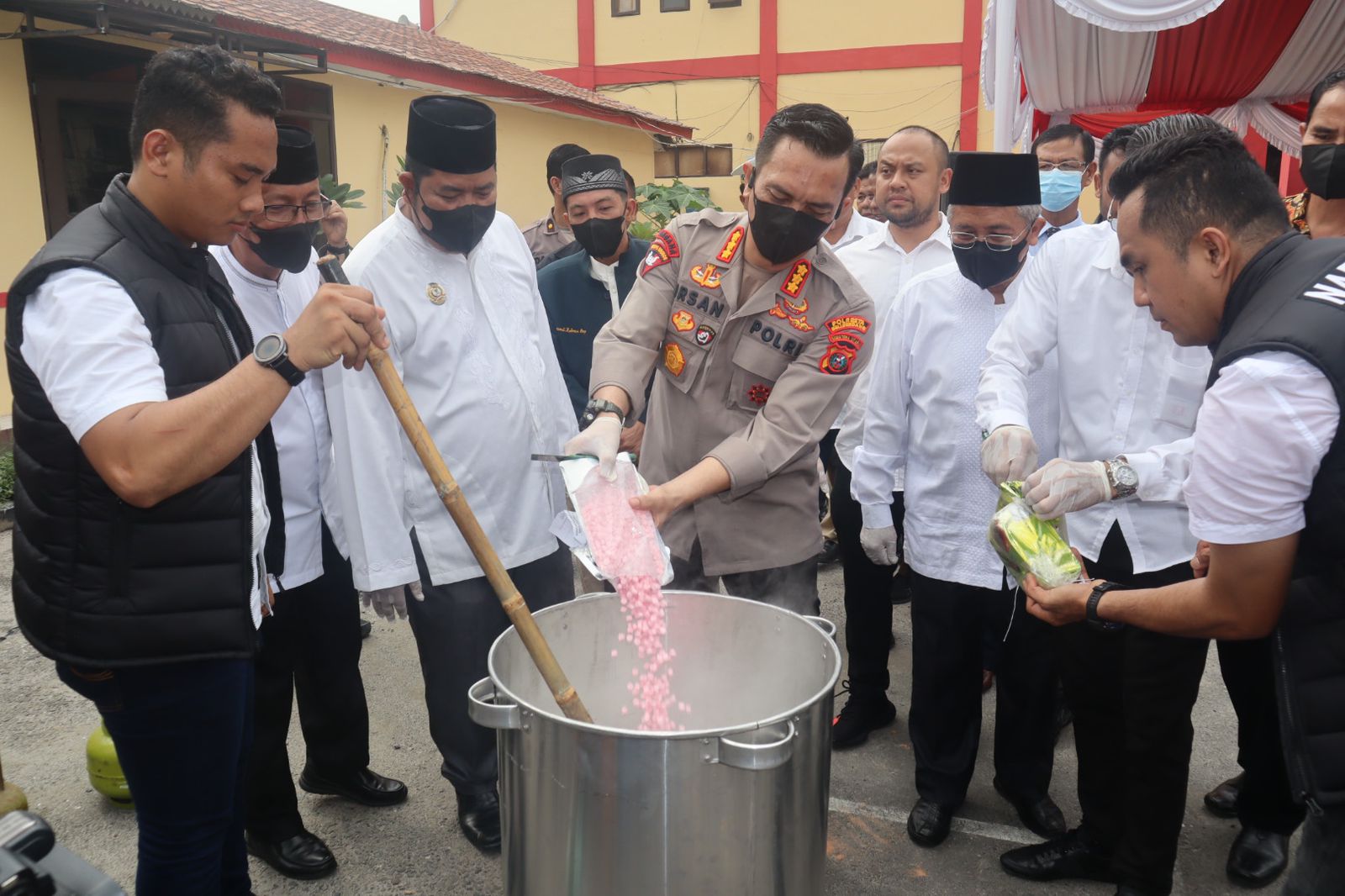 Dalam kesempatannya, Kapolresta Deli Serdang memaparkan jumlah barang bukti Narkotika yang akan dimusnahkan yakni Ganja seberat 172.986 gr, Shabu 19.386,93 gr dan Pil Extacy sebanyak 9.452.