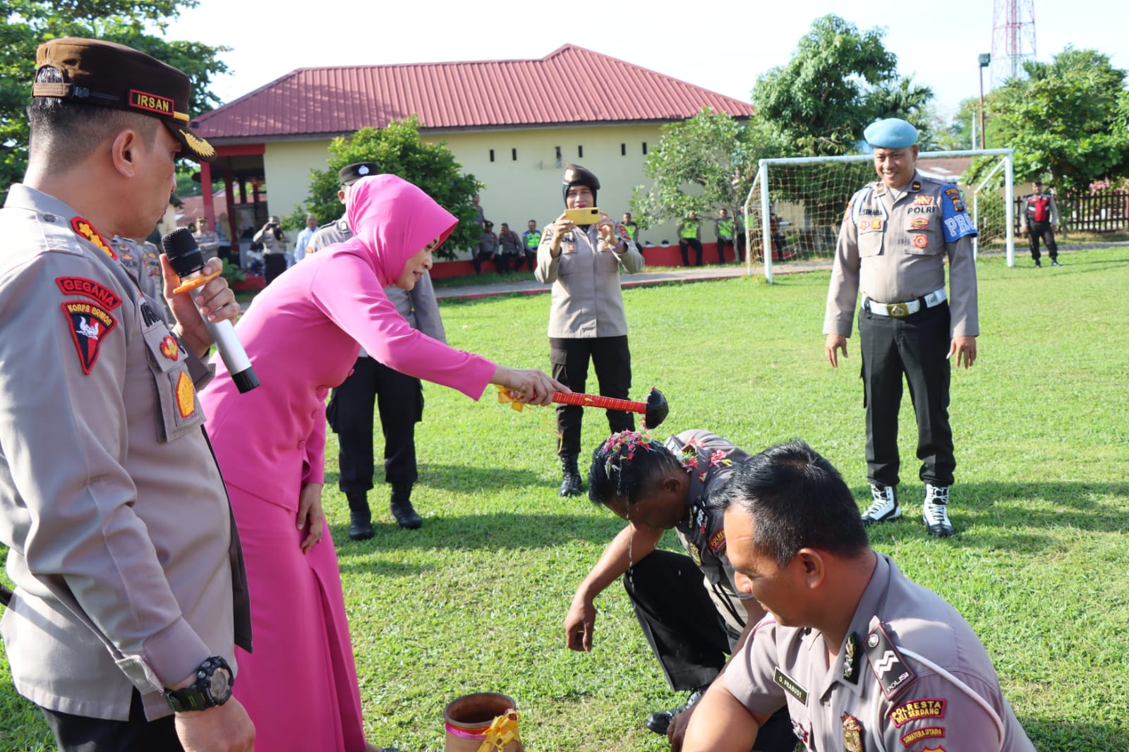 Diakhir kegiatan dilanjutkan dengan acara tradisi penyiraman air bunga kepada personil yang naik pangkat serta siraman air dari mobil water Canon.(@R)