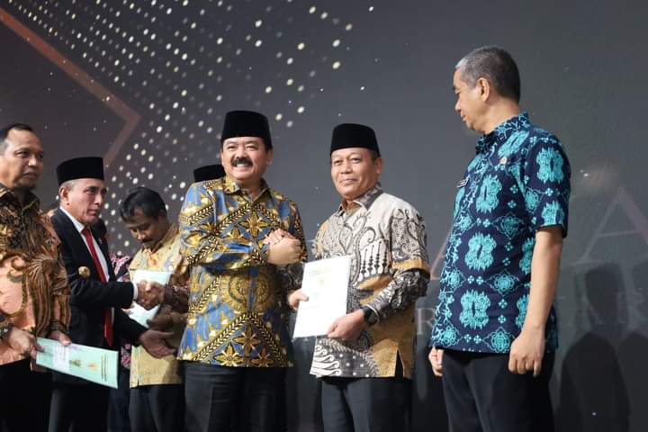 Walikota Tanjungbalai H Waris Tholib menerima 15 Sertifikat Aset Tanah Milik Pemerintah Kota Tanjungbalai yang diserahkan Menteri Agraria dan Tata Ruang (ATR) Republik Indonesia Hadi Tjahjanto, Kamis (20/7/2023) siang, di Ruang Rapat Raja Inal Siregar, Jl P Diponegoro No 30, Medan.