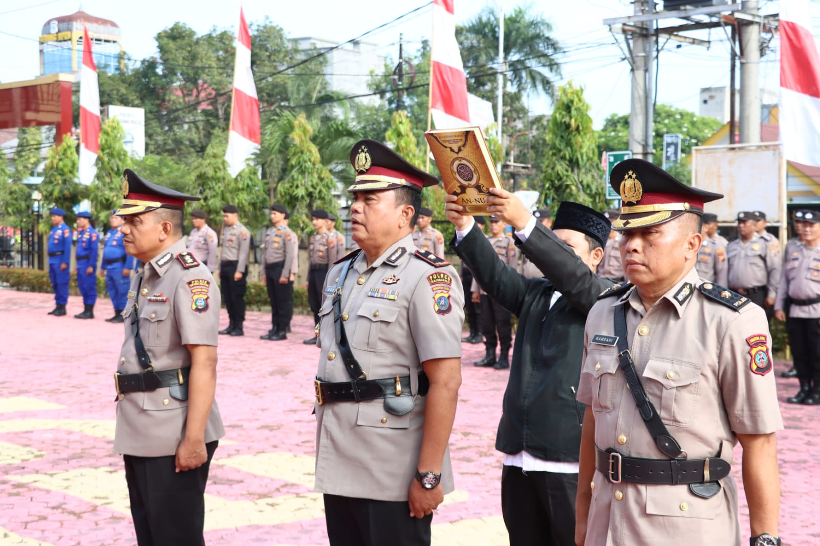 Bertempat di Lapangan Presisi, Kapolres Tanjungbalai AKBP. Ahmad Yusuf Afandi SIK MM pimpin Upacara Serah Terima Jabatan Waka Polres dan Kabag Ren, Selasa (25/07/2023) .