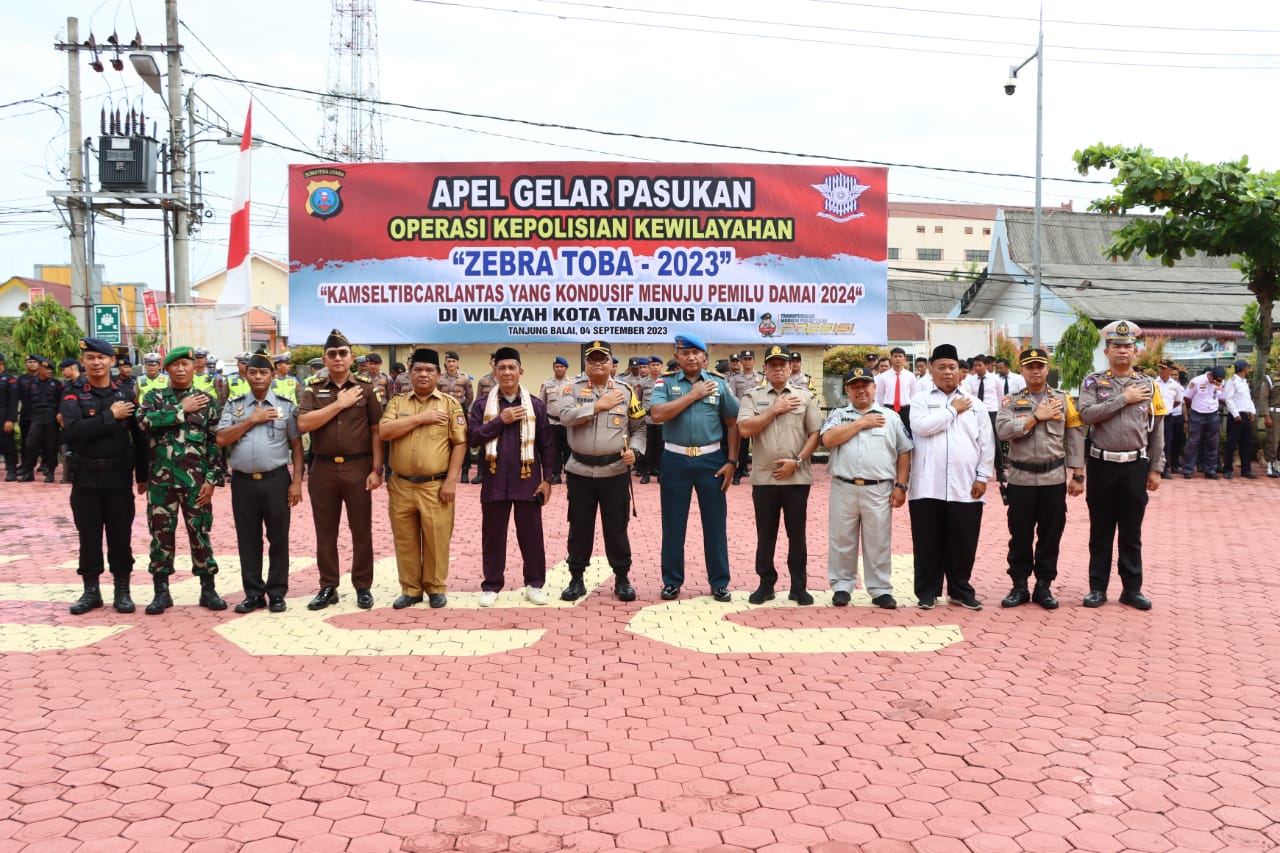 Lidikcyber.com, Tanjung Balai – Dengan tema Kamseltibcarlantas yang Kondusif Menuju Pemilu Damai 2024, Kapolres Tanjungbalai AKBP Ahmad Yusuf Afandi SIK MM pimpin apel gelar pasukan operasi kepolisian kewilayahan zebra toba 2023.