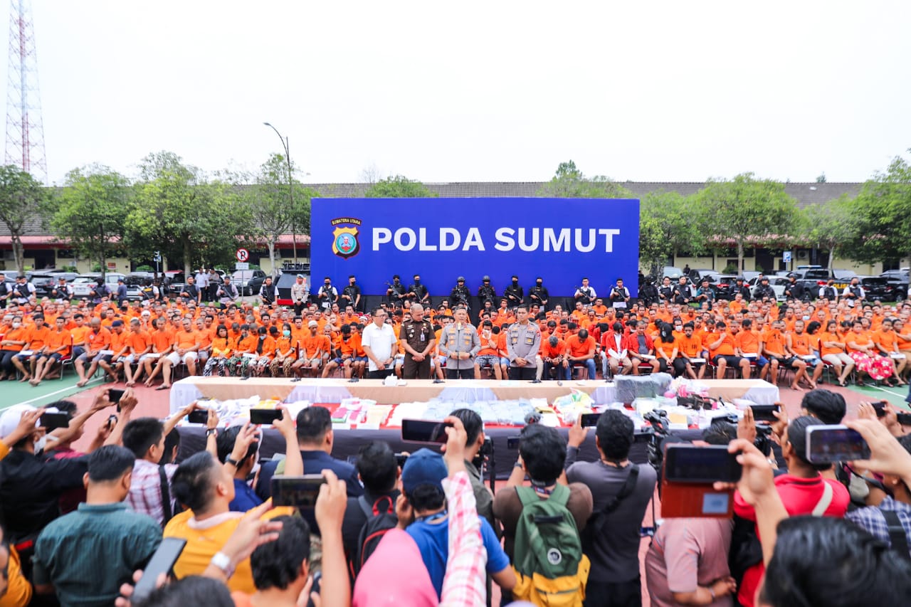 Kapolda Sumut melalui Kabid Humas Polda Sumut, Kombes Pol Hadi Wahyudi, mengatakan dalam pengungkapan kasus narkoba itu sebanyak 1.596 tersangka diamankan terdiri dari pemakai 378 orang dan jaringan narkoba 1.218 orang.