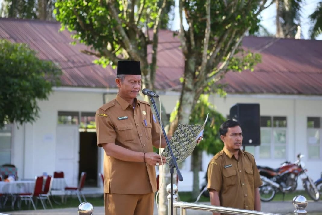 Asisten I Pemerintahan dan Kesra Pemerintah Kabupaten Labuhanbatu Drs. H. Sarimpunan Ritonga, M.Pd, (foto) memimpin Apel sebagai Pembina Upacara pada Apel Gabungan Kelompok I Pegawai di Lingkungan Pemerintah Kabupaten Labuhanbatu di lapangan kantor Badan Kepegawaian Pendidikan dan Pelatihan Kabupaten Labuhanbatu, Rantau Selatan, Senin (30/10/2023).
