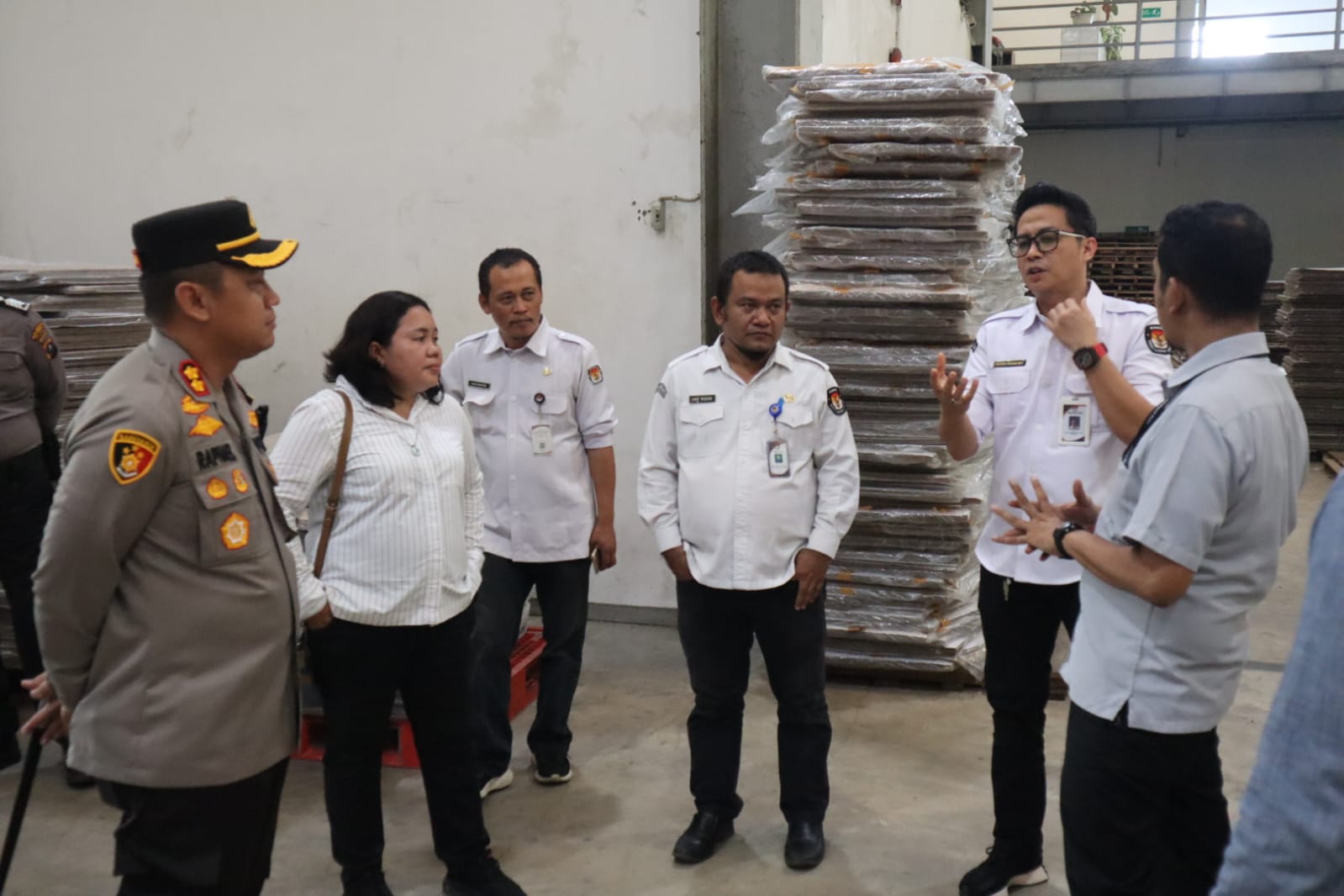 “Pengecekan dilakukan untuk memastikan tidak ada permasalahan atau gangguan yang dapat mempengaruhi proses penyimpanan dan distribusi logistik Pemilu 2024”, ucapnya