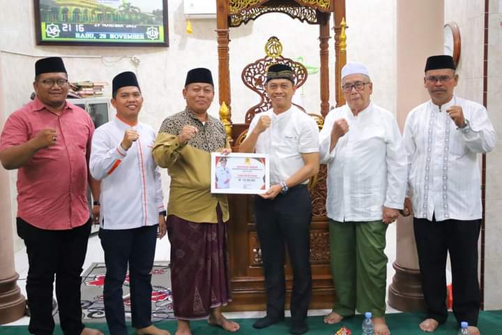 Walikota Tanjungbalai H Waris Tholib menyerahkan dana bantuan berbentuk voucher tersebut kepada Ketua BKM Masjid Syuhada H Abdul Wahab Sitorus dan Bendahara Daniel Nasution Rabu (29/11/2023) malam.