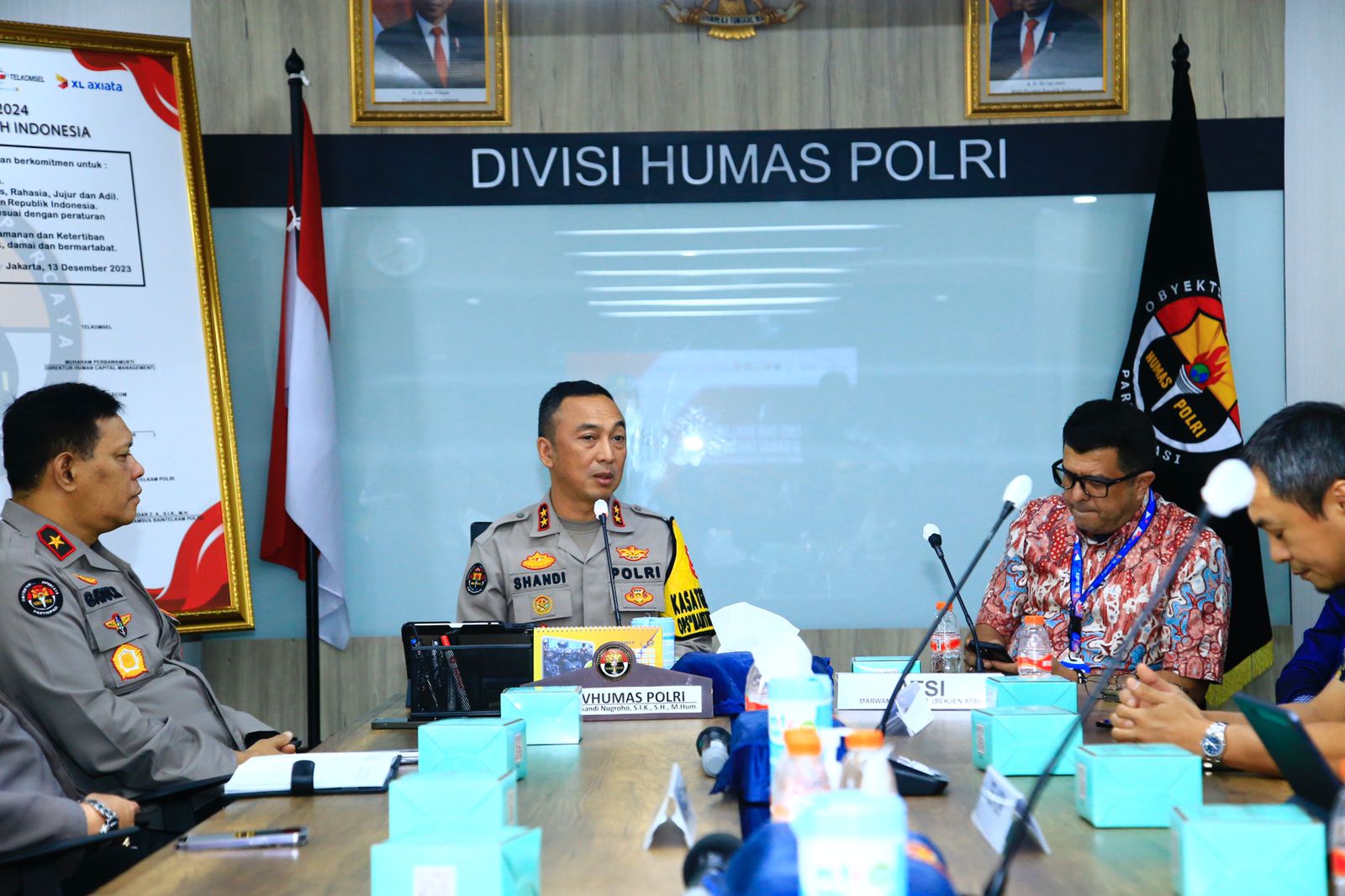 Turut hadir Wadirtipid Siber Bareskrim, Kabagopsnalkom Rotekkom DivTIK Polri, Kasubdit Propaganda Dit Kamsus Baintelkam Polri, dan para Karo serta Kabag di jajaran Humas Polri.